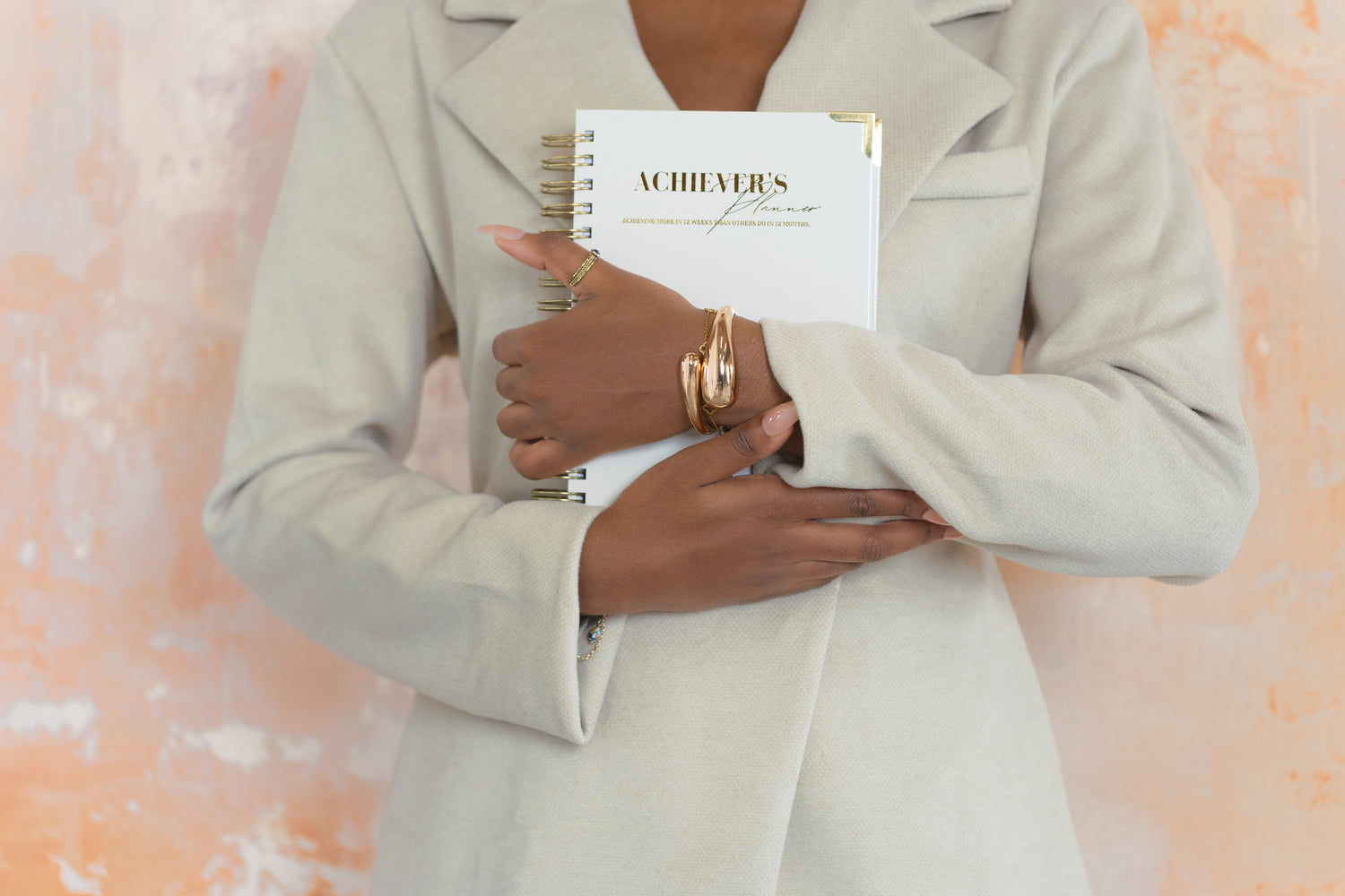 Command attention and take charge with the Leopard Brown planner. Featuring a bold, shiny cover and gold accents, this planner is crafted for those who dare to dream big and make it happen. Your ultimate companion for organizing your life, setting goals, and achieving more in just 12 weeks. Let your ambition shine!